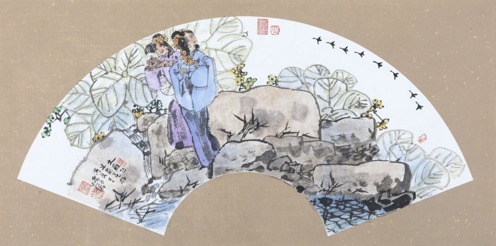 作品名称:大雁飞过菊花插满头