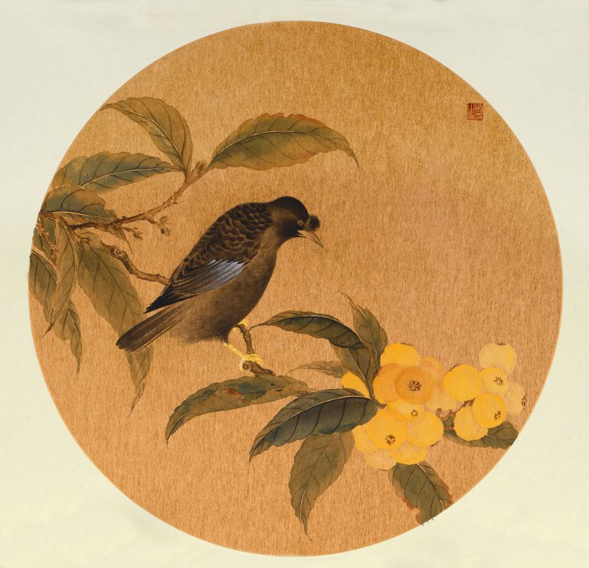 作品名称:《八哥枇杷》