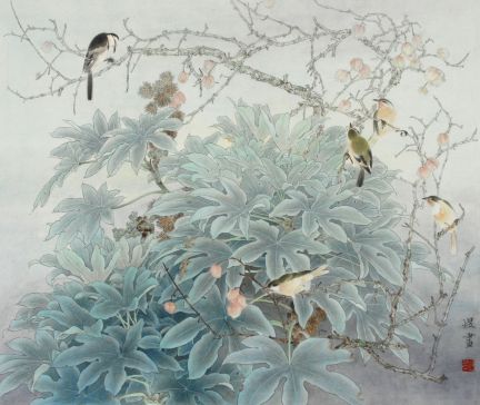 秋塘戏水图