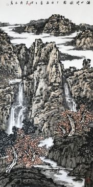 《深谷雨后藏飞瀑》