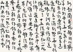 他作画简括、果断、泼辣、准确、灵动,可谓大刀阔斧,一挥而就,有粗有细,有放有收,不仅笔墨酣畅淋漓,而且大气流贯、磅礴撼人,形、神、意、趣四者皆备,体现了画家的秉赋与个性气质。