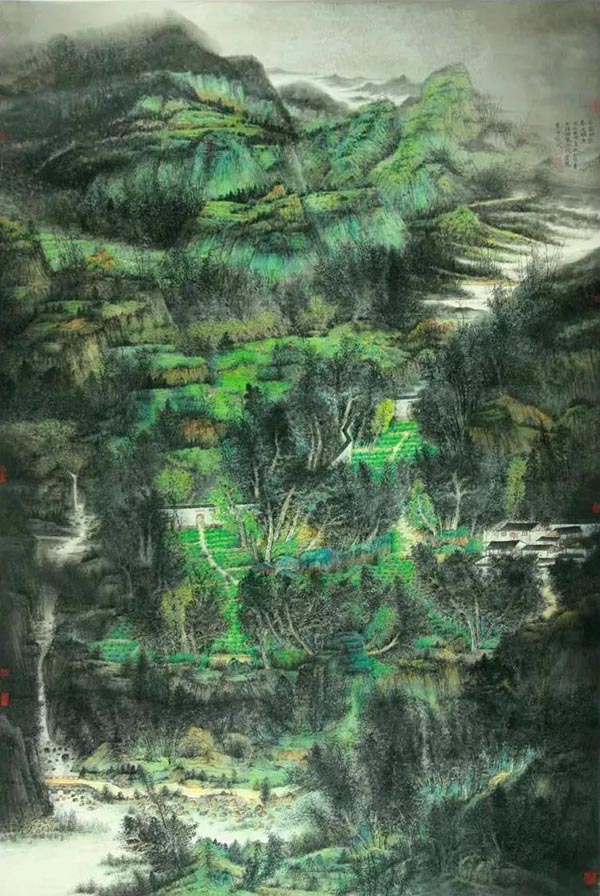 展读张宗凤的山水画,那丛山、那密林,那房屋、那梯田,将会勾起一个远离山村进城游子思乡的心绪,会让他打开那记忆的闸门而留下温暖的泪水;还会引起那些生在城里的人们,对高山大川、青水绿树的大自然的向往和渴望。而这些都会因为有了张宗凤的山水画,而得到了软润式的精神满足。这就是艺术能给我们带来的最大效能。