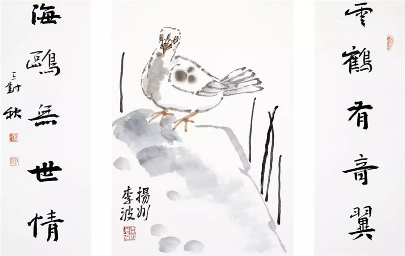 云鹤海鸥 字:44x15cmx2 画:44x31cm 2016